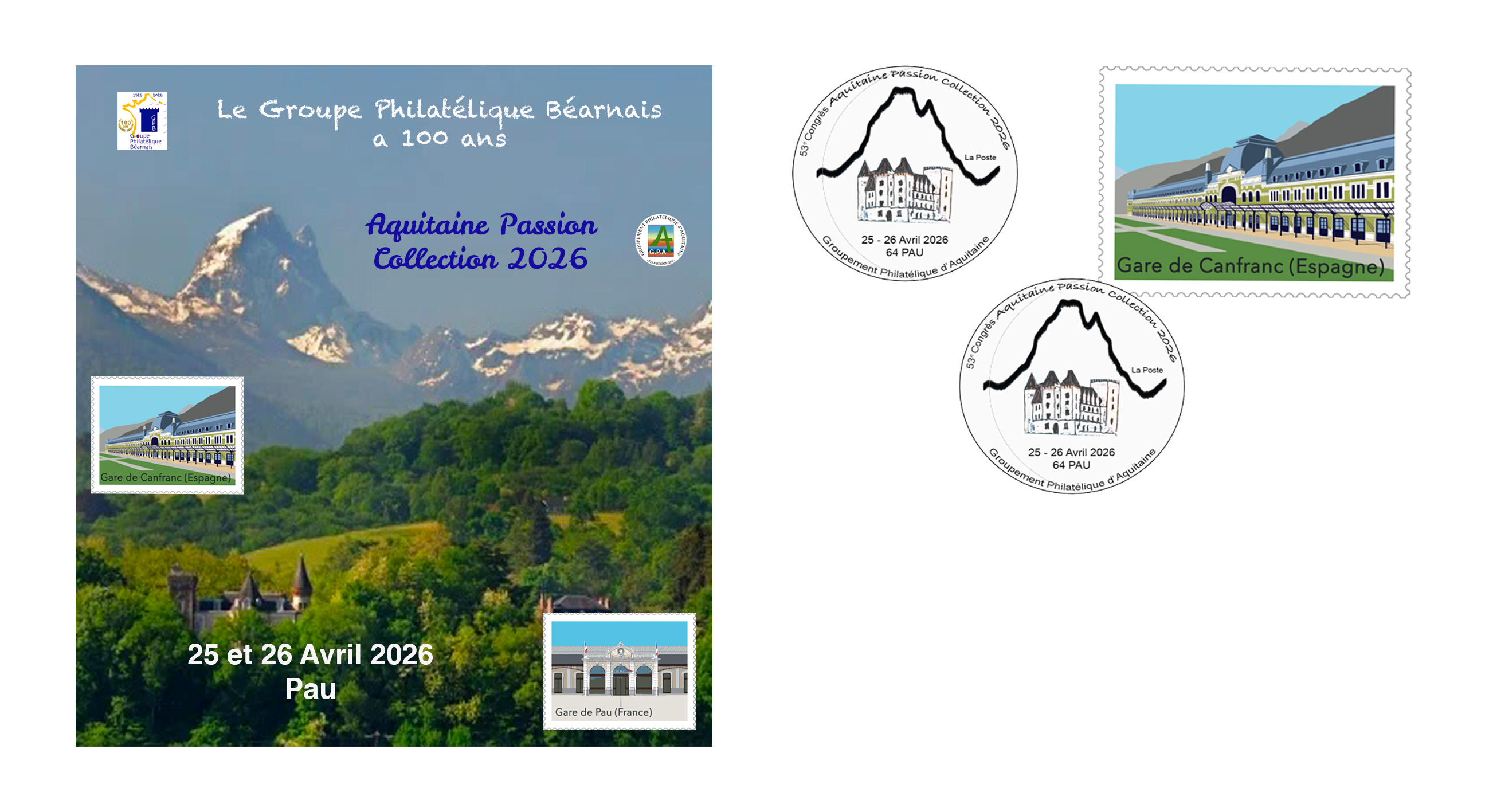 2 Timbres-poste autoadhésifs sont émis à l'occasion de la manifestation, un sur la Gare de Pau et le second sur la Gare de Canfranc. Ces timbres-poste sont disponibles à la vente soit individuellement au tarif unitaire de 2 €