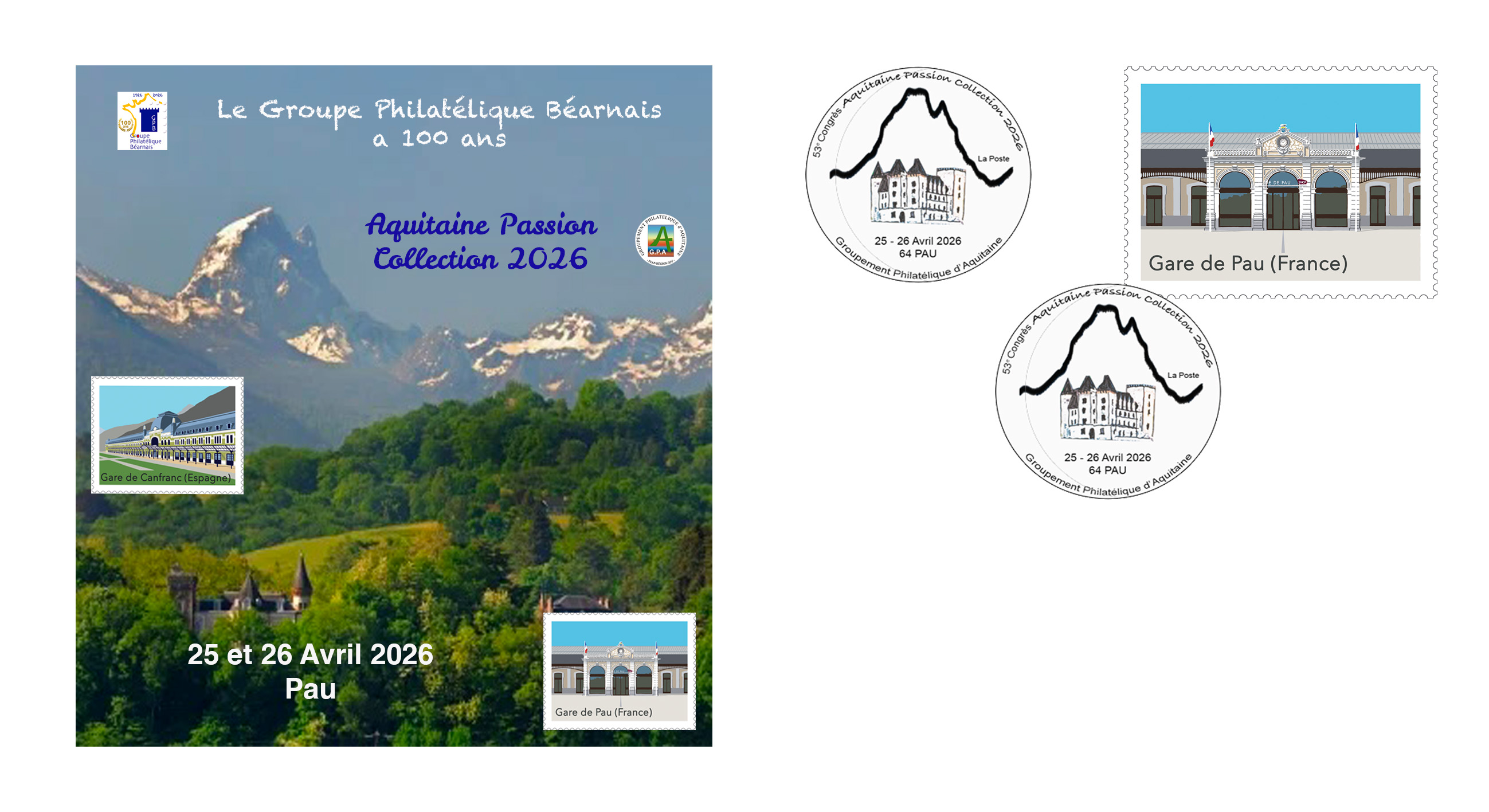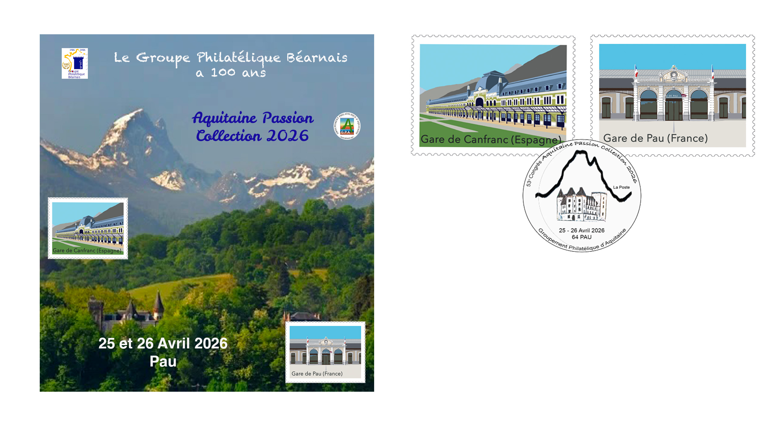 2 Timbres-poste autoadhésifs sont émis à l'occasion de la manifestation, un sur la Gare de Pau et le second sur la Gare de Canfranc. Ces timbres-poste sont disponibles à la vente soit individuellement au tarif unitaire de 2 €